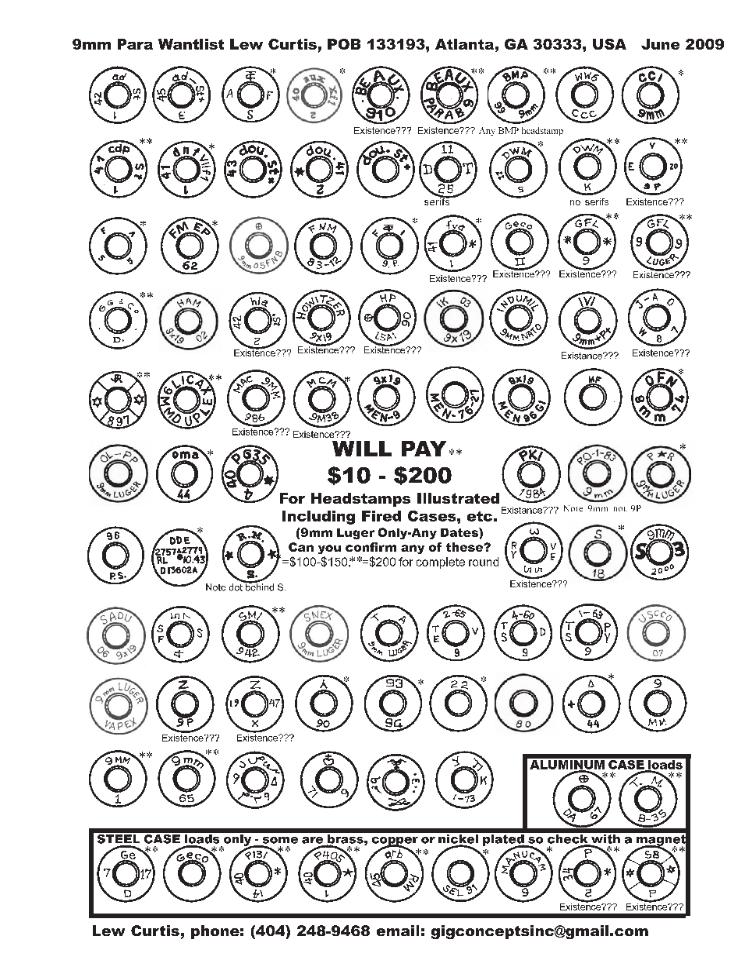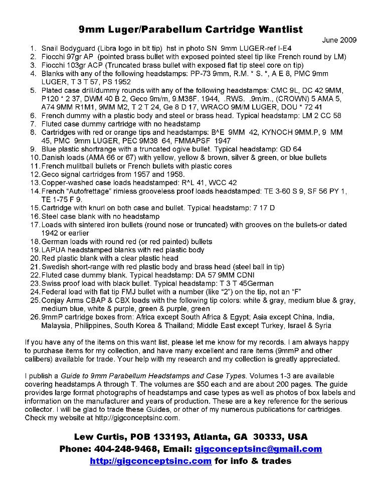 | ********************************************************************************************************************************************* My want list of 9x19mm Cartridges Also .pdf files to download and print |